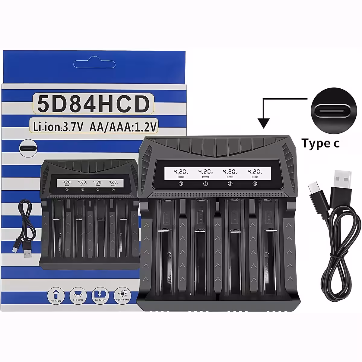 The LCD display provides clear information on the status of each charging channel. Power is supplied