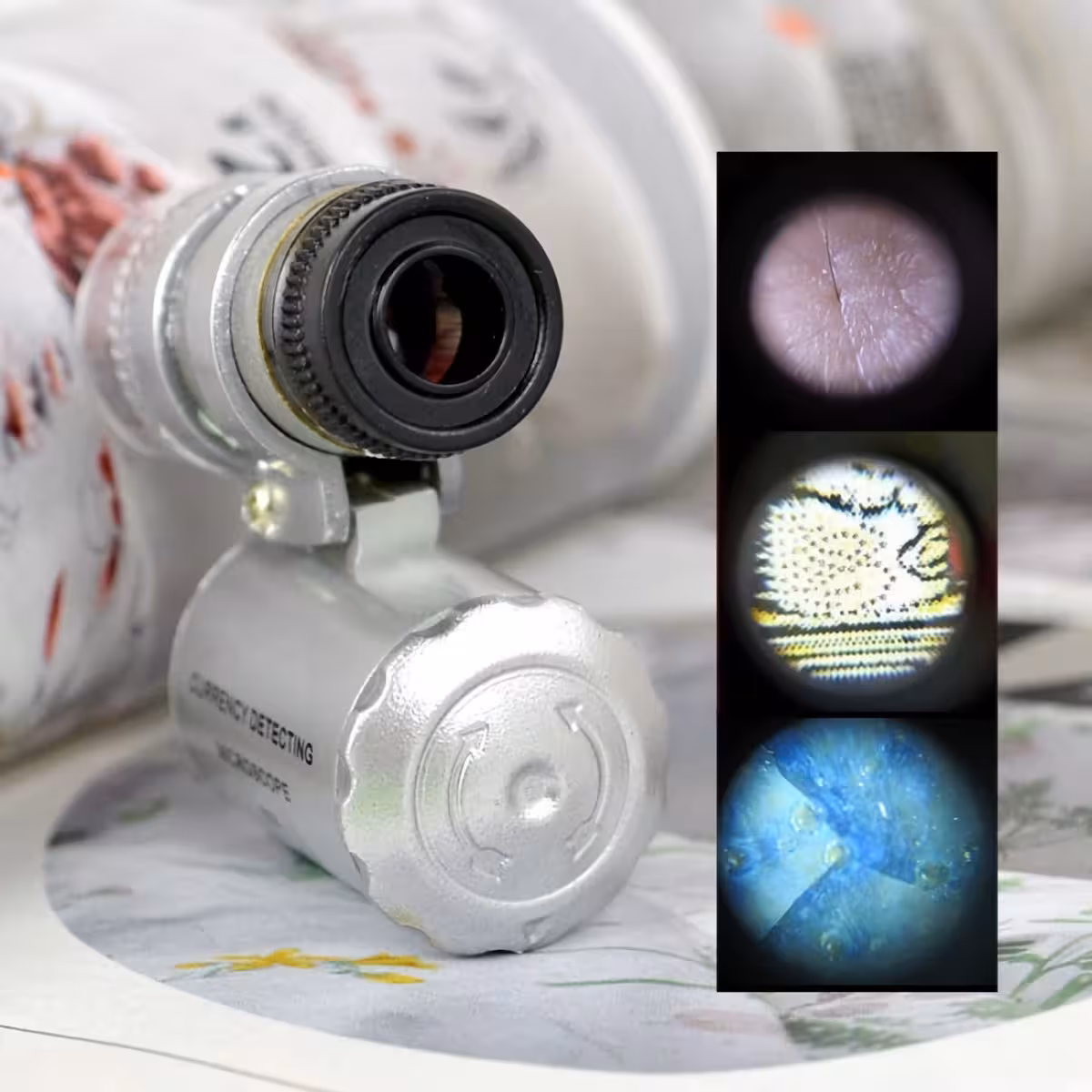 This portable and high-performance microscope has multiple practical uses. It is ideal for inspecting watches, jewelry, coins, banknotes, stamps, antiques, electrical circuits, and various DIY projects.