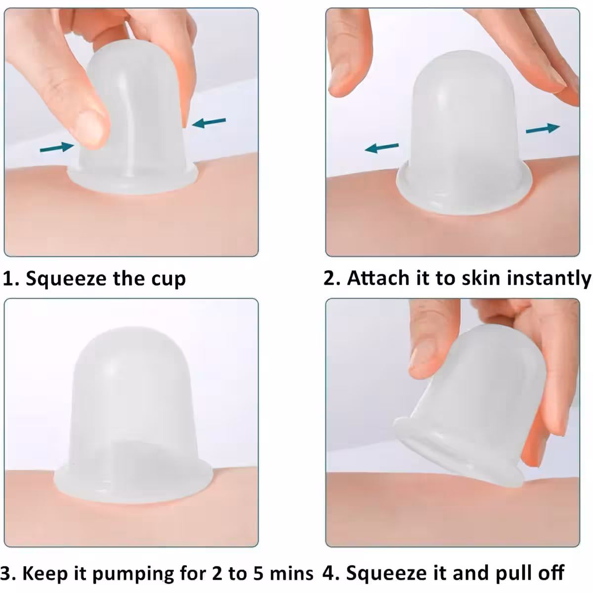 Set of 4 Silicone Cups for Cellulite Massage with Vacuum – Natural Therapy at Home