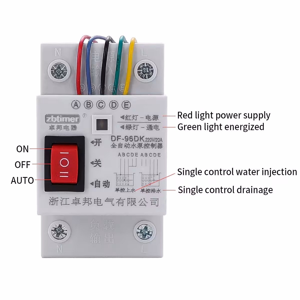 - A (red) – upper level: stops the pump