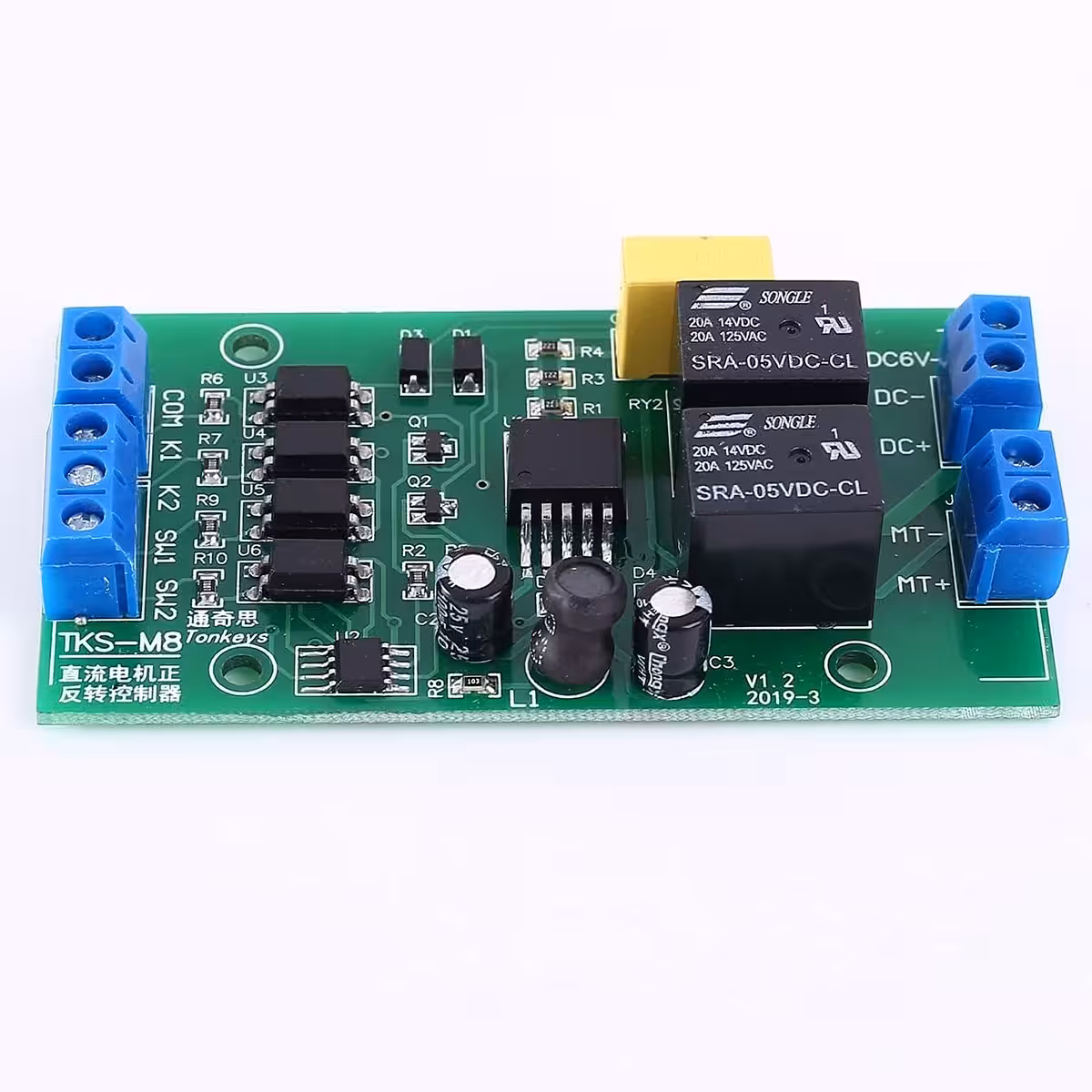 The module works perfectly with Arduino because K1 and K2 inputs are active-low, meaning they activate when connected to GND. Arduino can control motor direction using just two digital pins, while the controller handles all current switching.