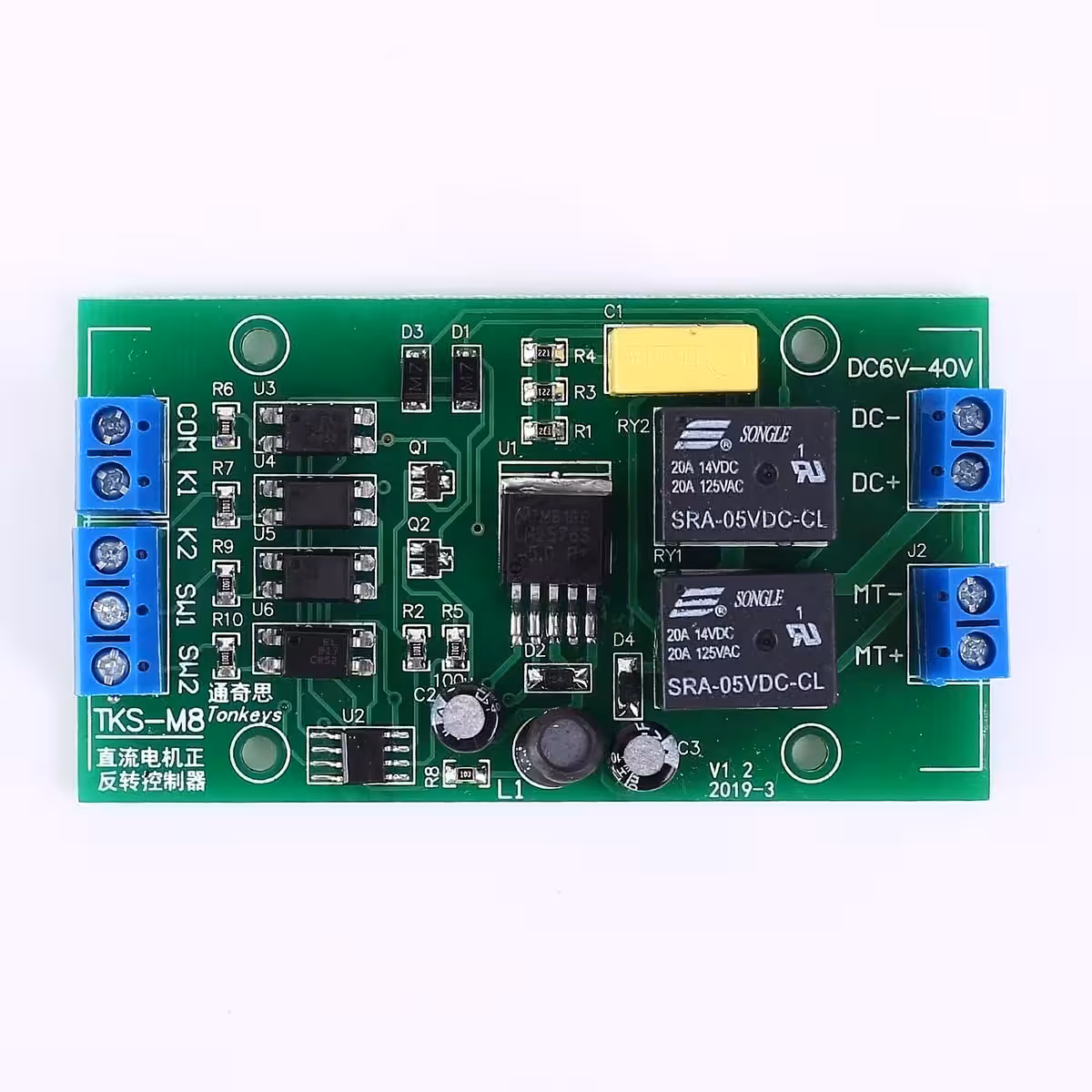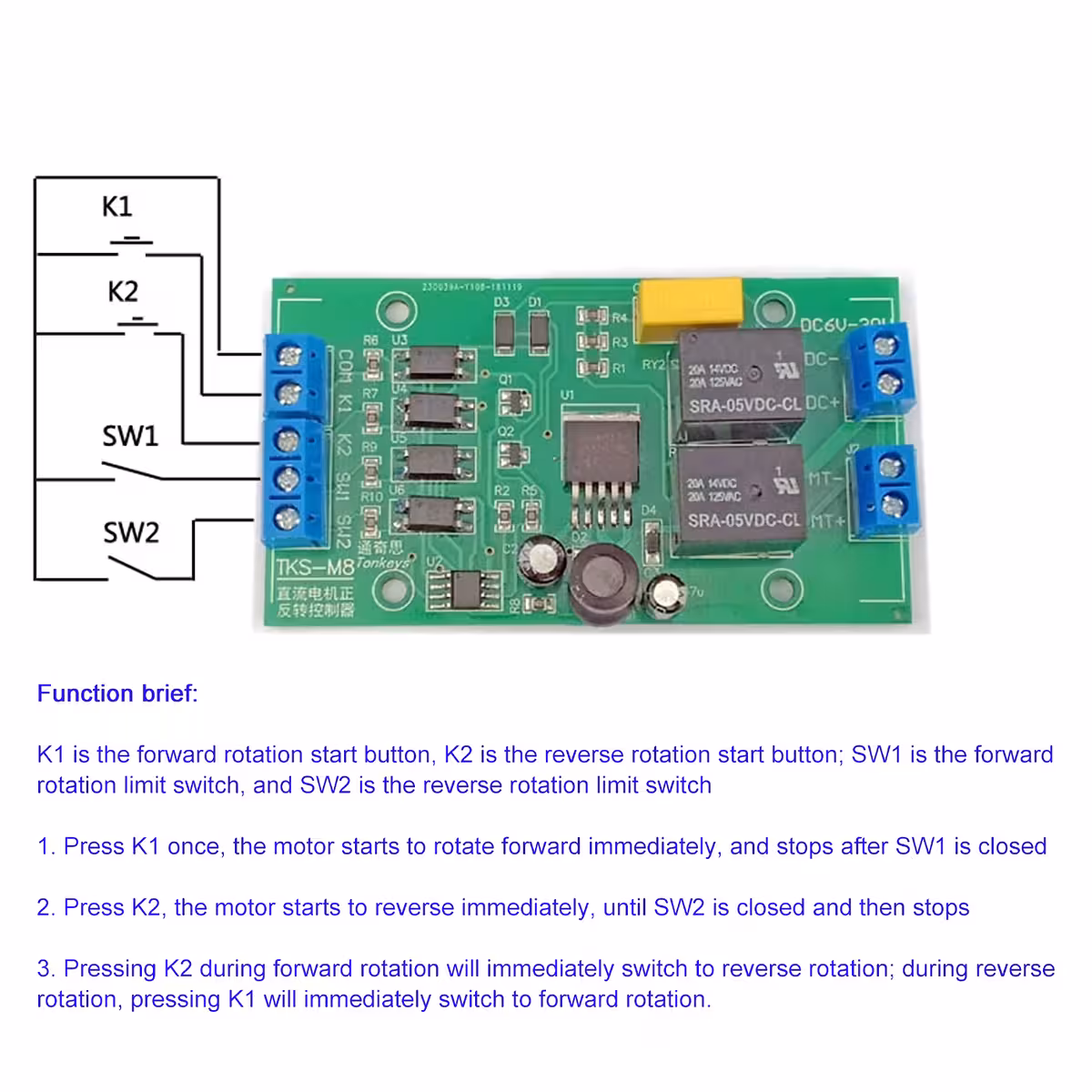 Motor Direction Controller – DC 4–40V, up to 20A, PO/P1 Modes with Limit Switches