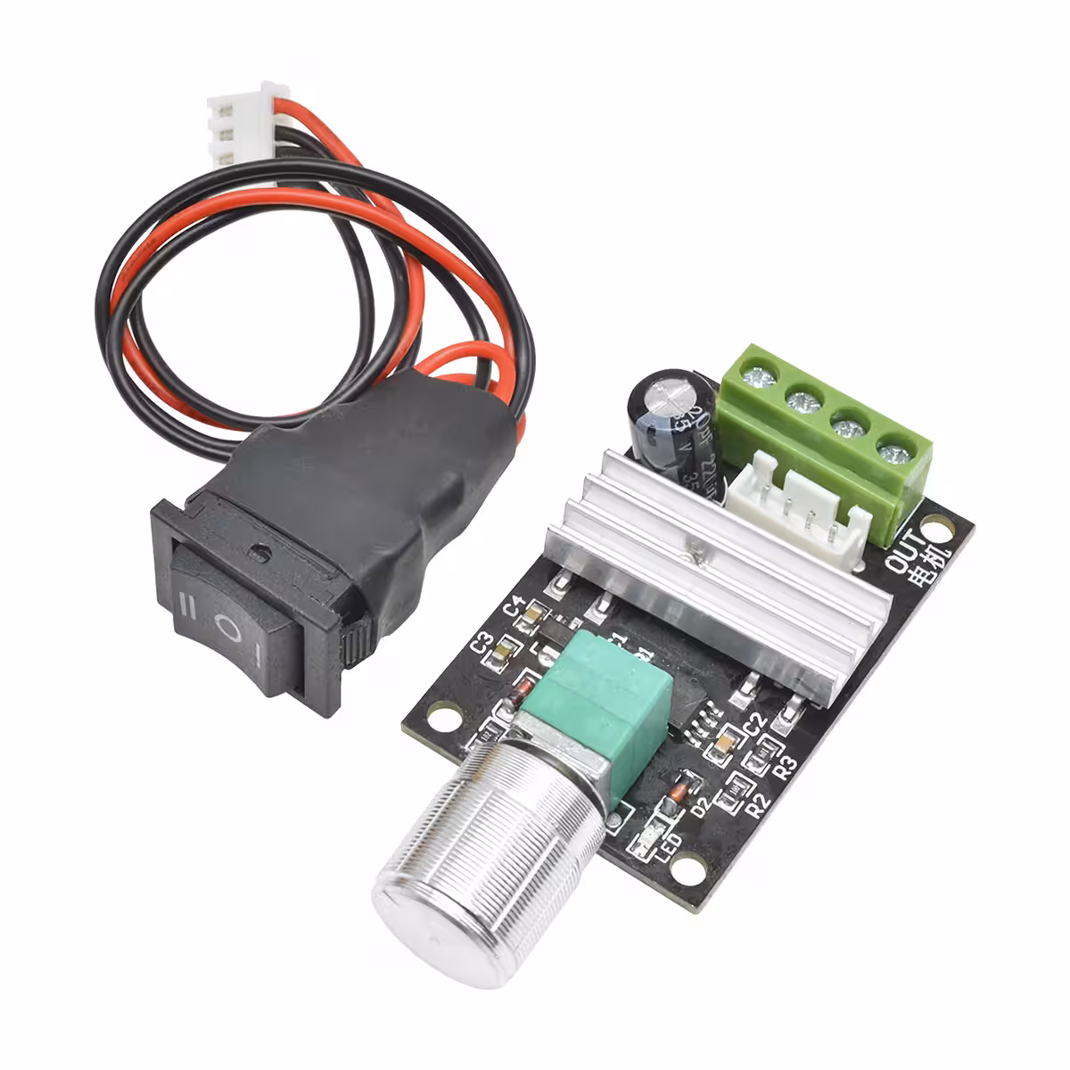 DC Speed Controller 6-24V 3A with PWM Control and Direction Reversal Button