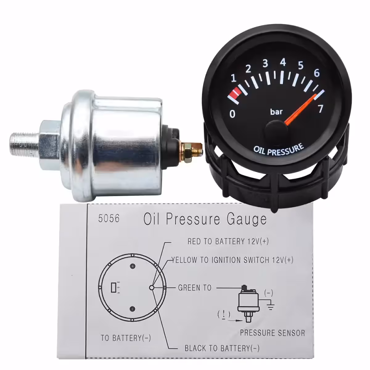 It is ideal for automotive, agricultural, or industrial applications, displaying oil pressure levels from 0 to 7 BAR with excellent accuracy.