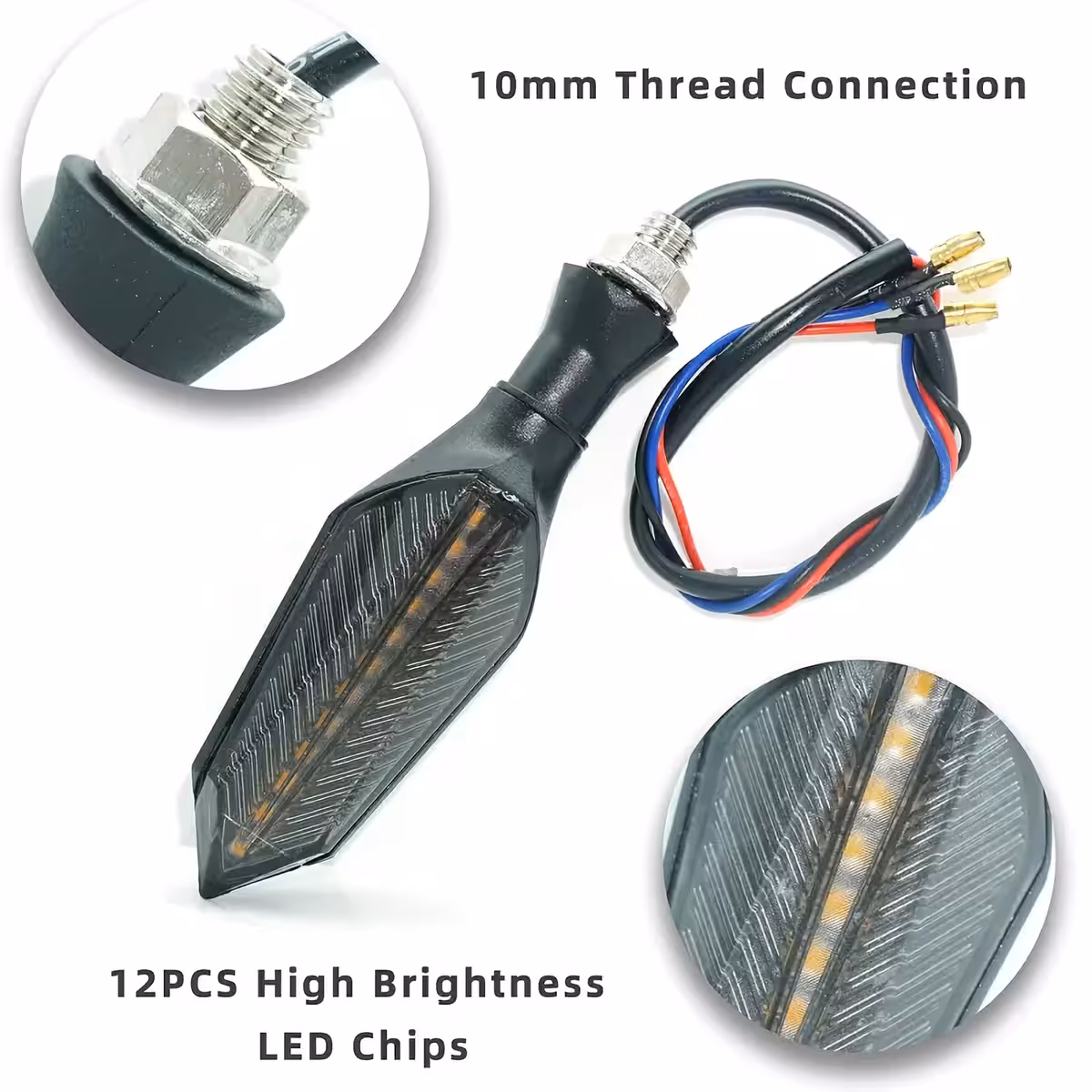 This set of 2 dynamic LED turn signals is ideal for electric scooters, electric motorcycles, and other two-wheeled electric vehicles.