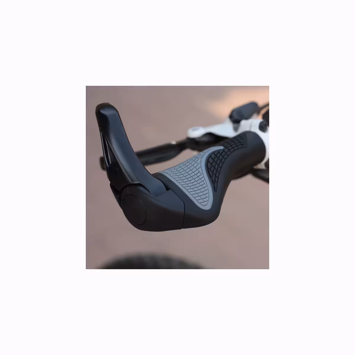 MTB Mountain Bike grips made of rubber with lock-on rings and ergonomic bar ends, suitable for any bicycle or electric scooter handlebar.