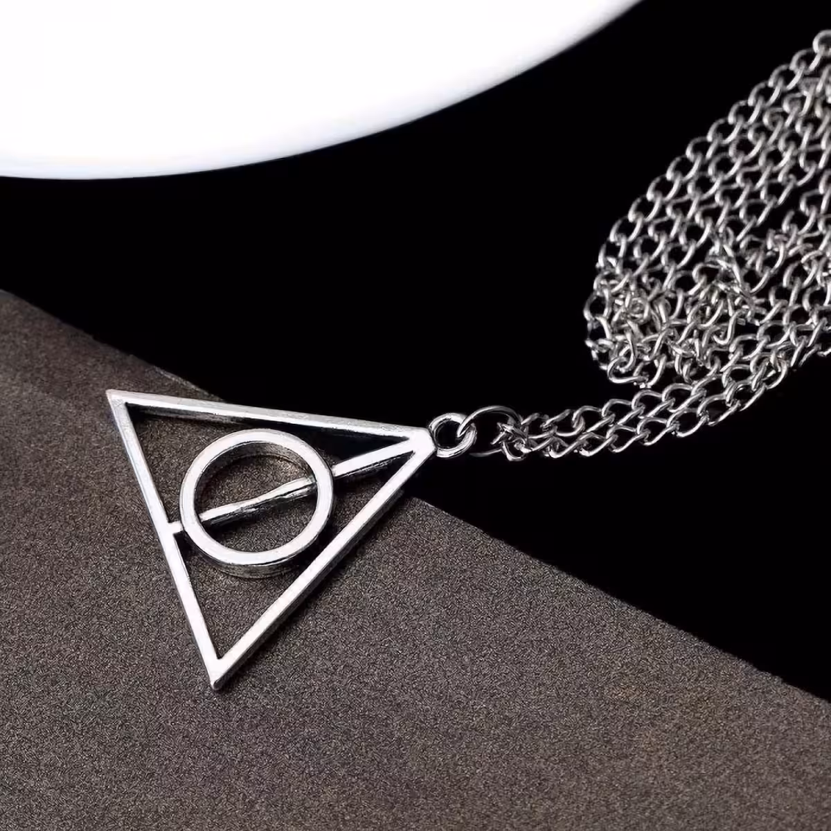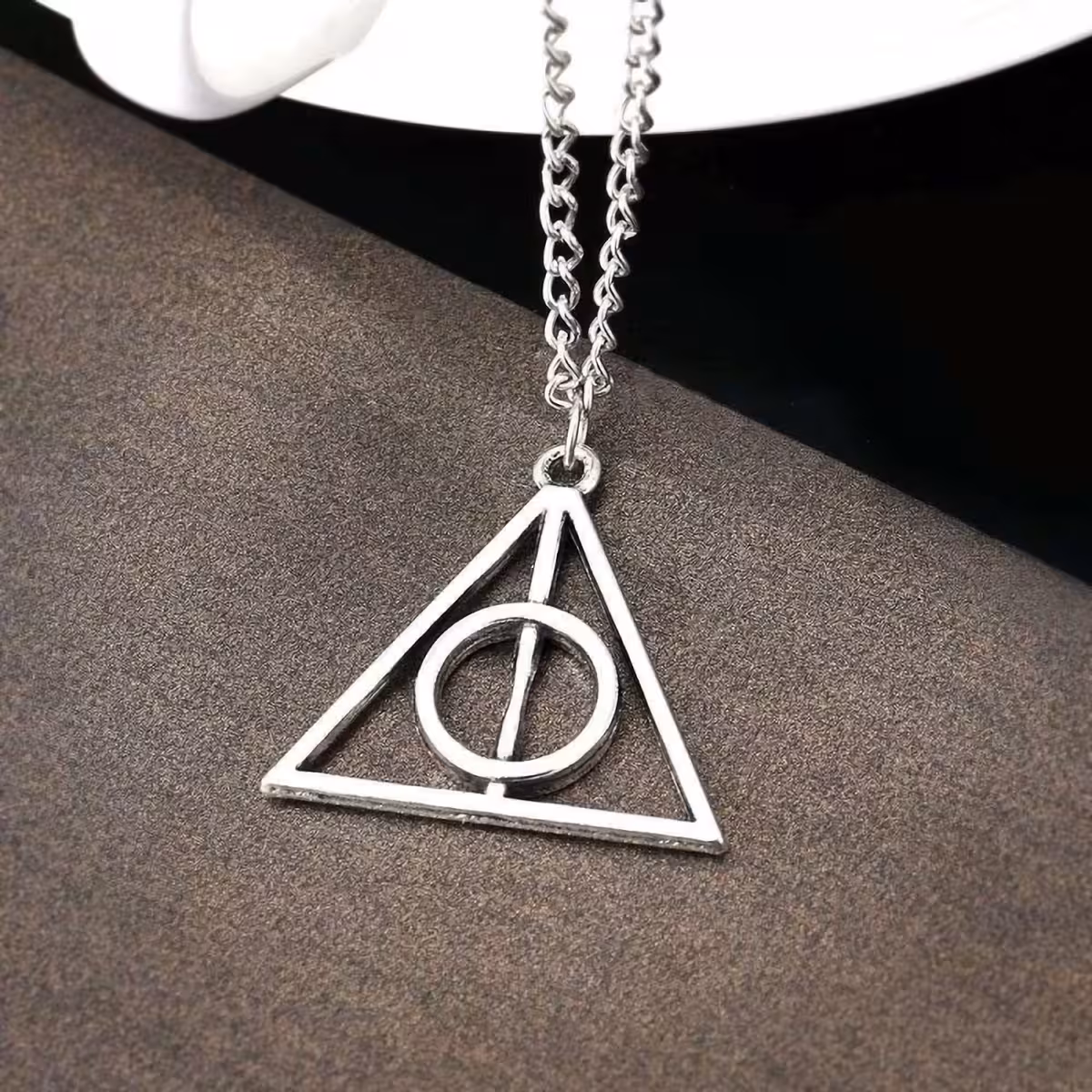 Harry Potter Deathly Hallows pendant necklace is an iconic accessory for fans of the series, representing the sacred symbol of the Deathly Hallows triangle. Made of high-quality zinc alloy, this durable pendant combines modern style with magical themes, perfect for daily wear or as a collectible item.
