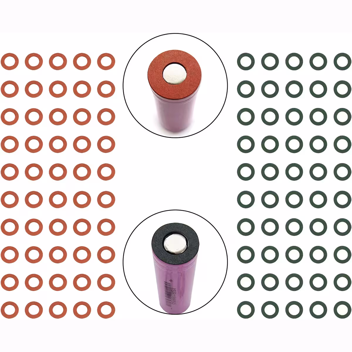Insulation Paper for Li-Ion 18650 Battery – Set of 100 Pieces (50 Green + 50 Red)
