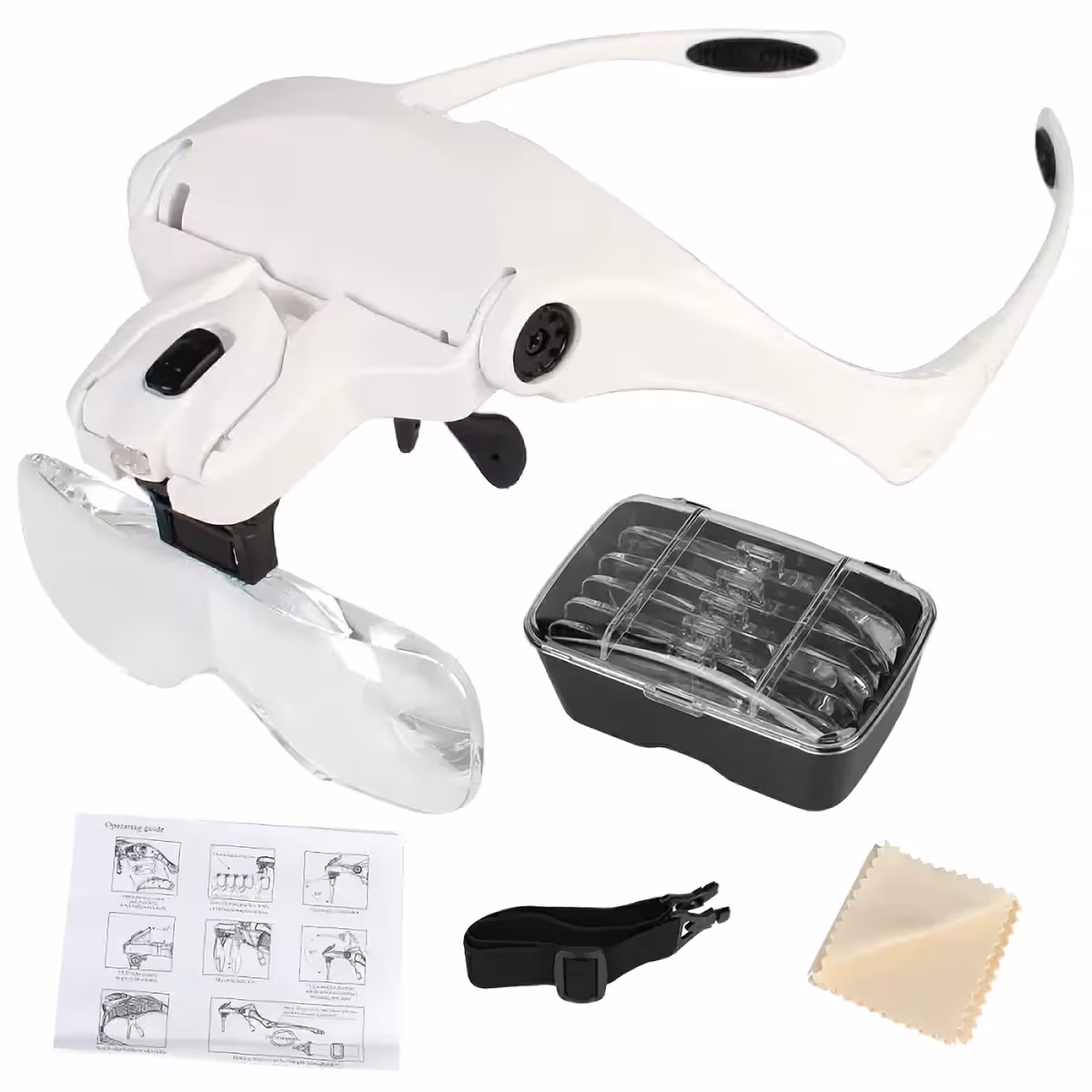 These magnifying glasses are ideal for watchmakers, electricians, jewelers, dentists, or hobbyists who require detailed work. They feature five interchangeable lenses (1.0X, 1.5X, 2.0X, 2.5X, 3.5X) and adjustable LED lighting for clear vision in any condition.