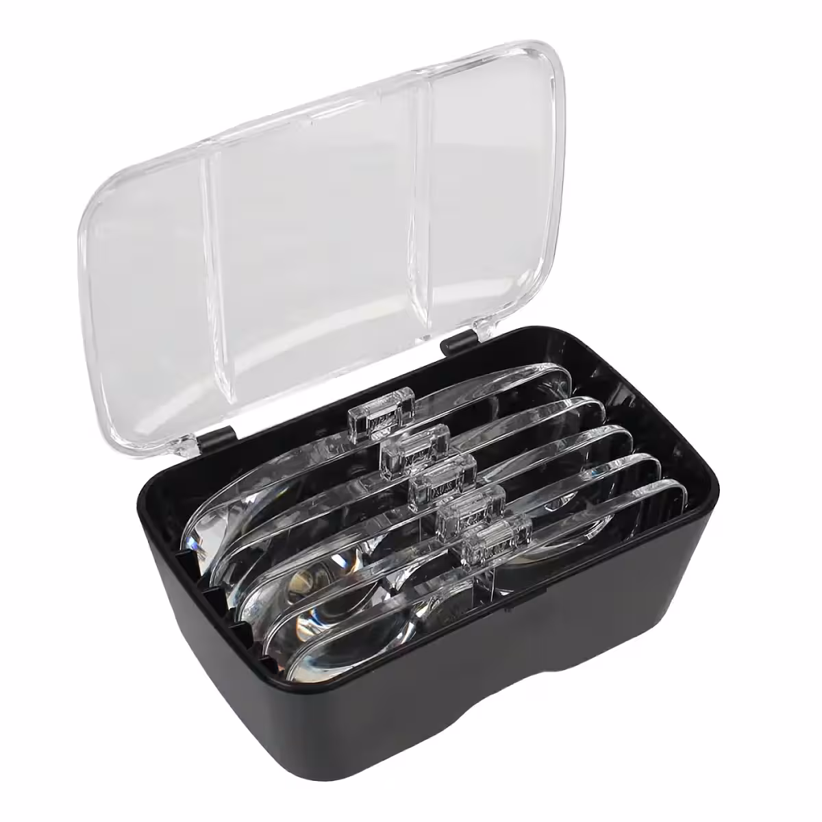 • 5 x acrylic lenses (1.0X – 3.5X)