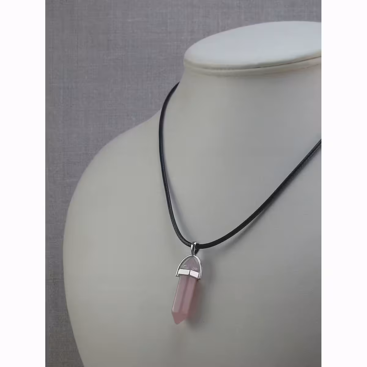 The offer includes: rose quartz pendant and leather chain, elegant and durable, with a lobster clasp closure.
