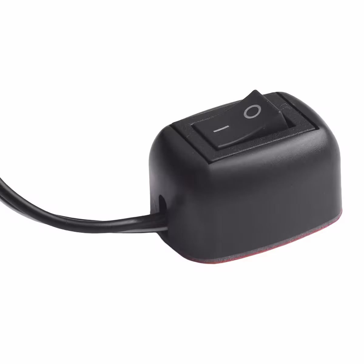 This ON/OFF button is a universal adhesive-mounted switch compatible with DC 12–24V and AC 250V/6A power supplies. It provides stable operation, compact dimensions, and quick installation without drilling. Includes AWG18 60 cm wire, suitable for automotive, motorcycle, boats, LED strips, and various low- or medium-voltage electrical equipment.