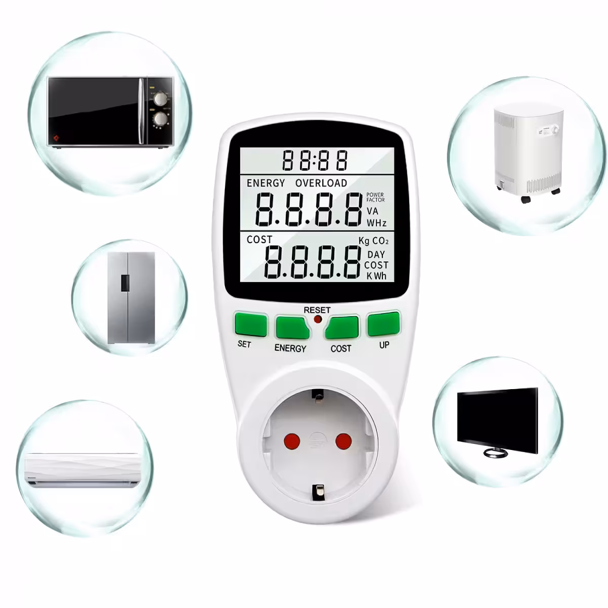 This wattmeter allows precise measurement of electrical parameters for any device connected to the plug. Monitor the actual energy consumption of appliances in your home or office to optimize costs.