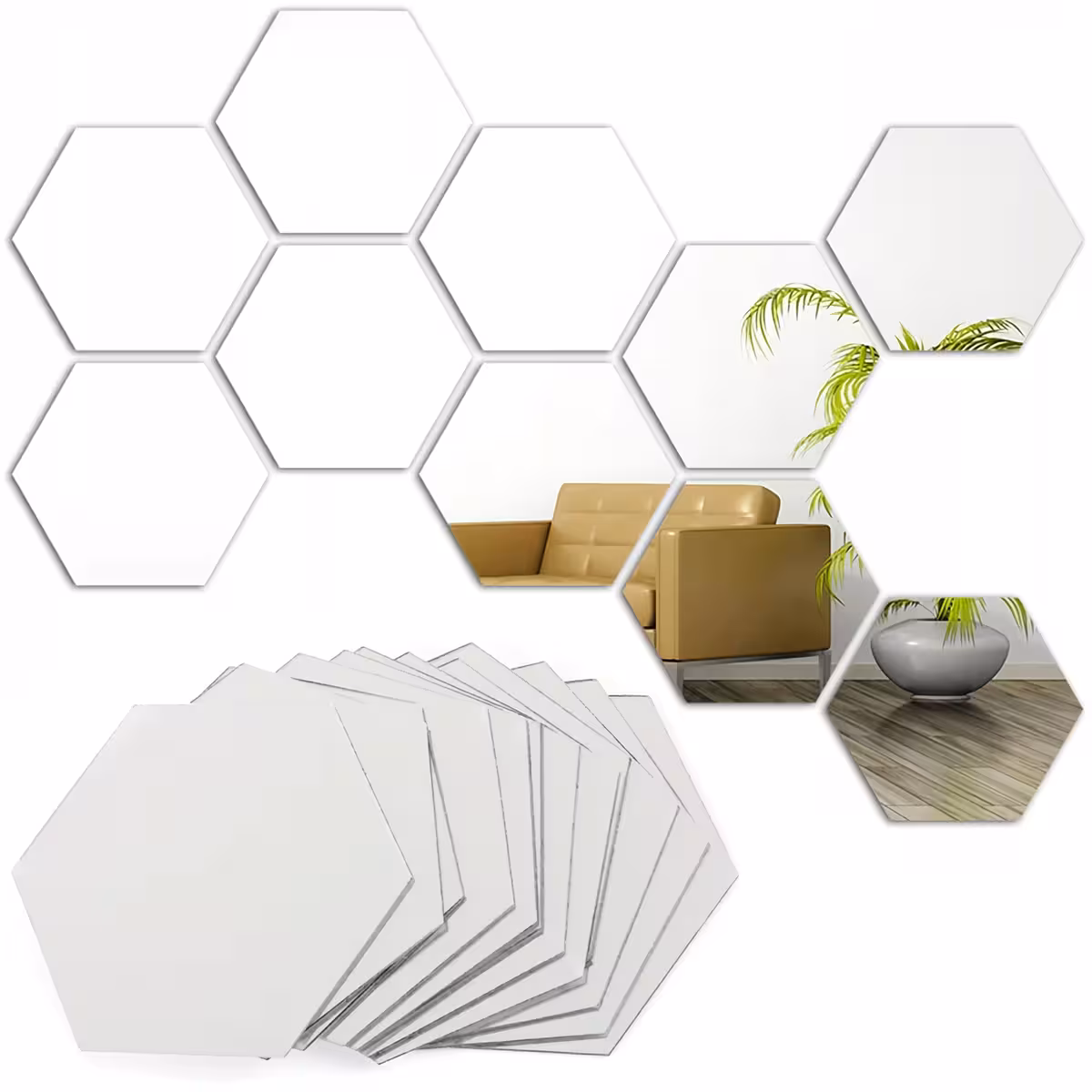 Experience the role of an interior designer and transform your space! This set of hexagonal adhesive mirrors provides an elegant and creative solution for wall decoration. Whether you want a unique mirror or simply to visually enlarge a room, these decorative self-adhesive mirrors are the perfect choice.