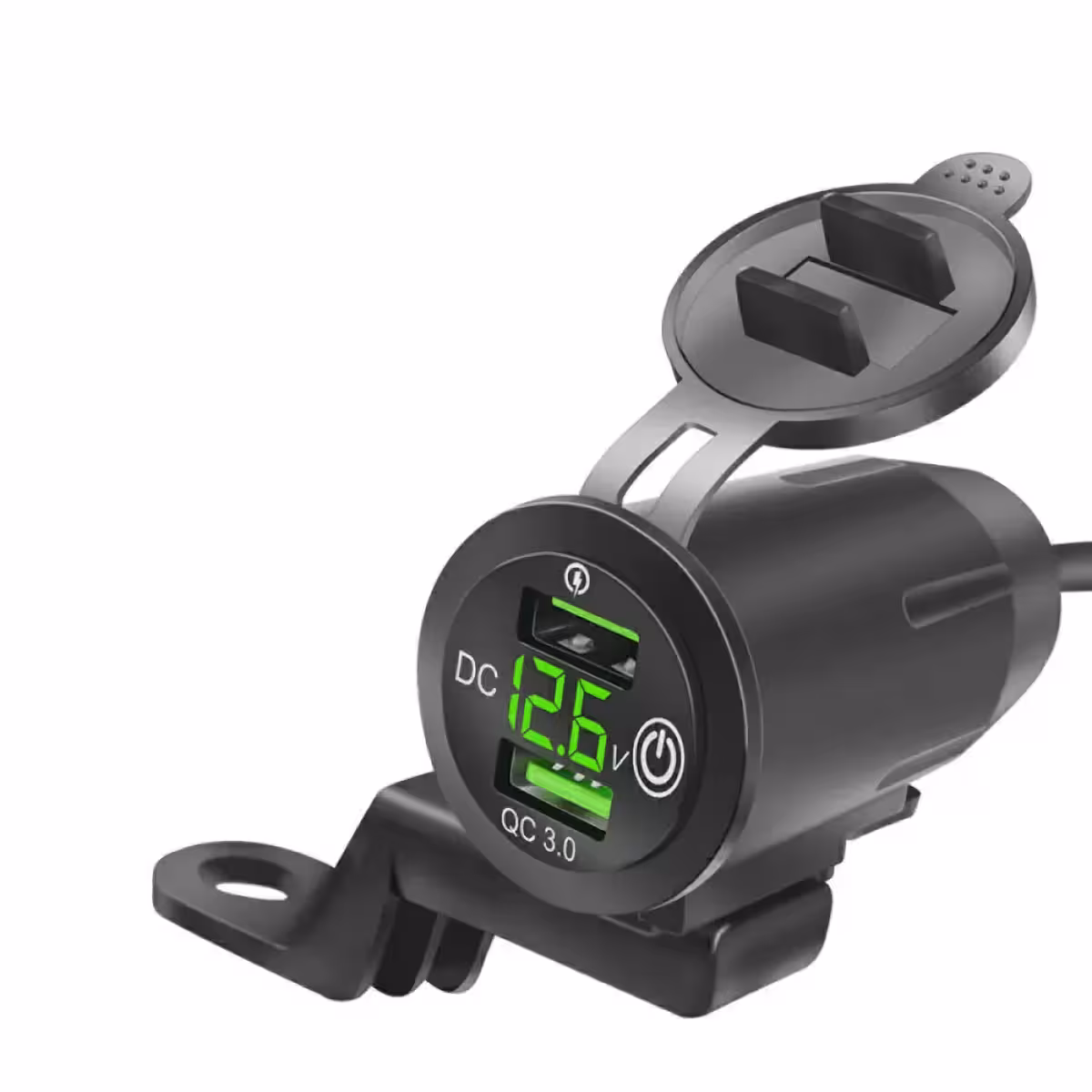 USB Socket Phone Charger with Voltmeter for Motorcycle – QC 3.0 and Fast Charging