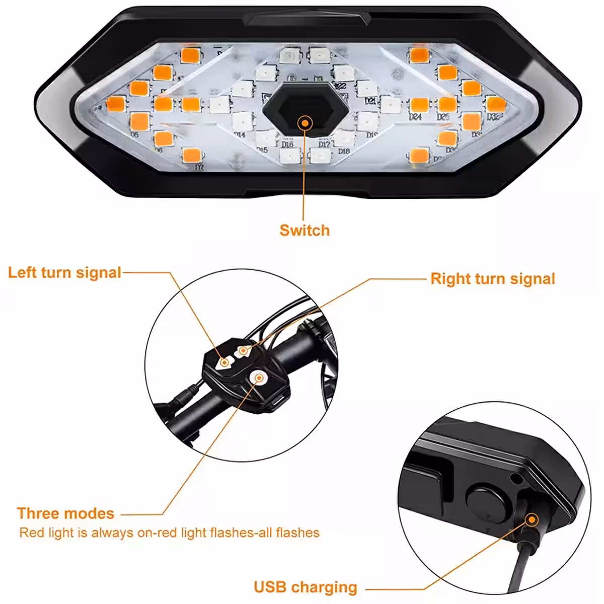 The ultra-bright LED light provides clear turn signals, visible in any conditions, enhancing safety both day and night.